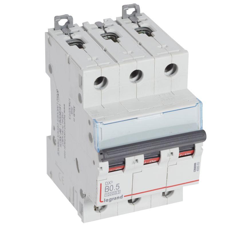 Выключатель автоматический модульный 3п B 0.5А 16кА DX3 10000 3мод. 400В Leg 408983