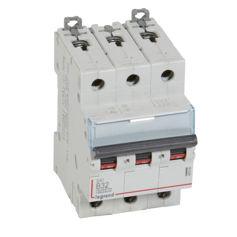 407564 | Выключатель автоматический модульный 3п B 32А 10кА DX3 6000 3мод. 400В Leg