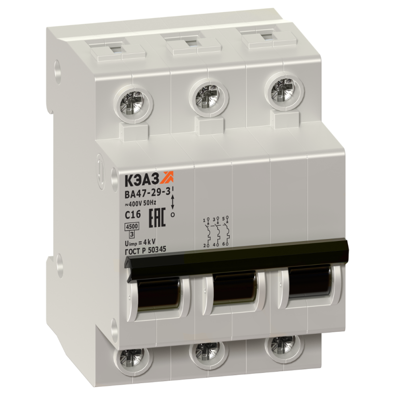 Выключатель автоматический модульный 3п C 6А 4.5кА ВА47-29-3C6-УХЛ3 КЭАЗ 231630