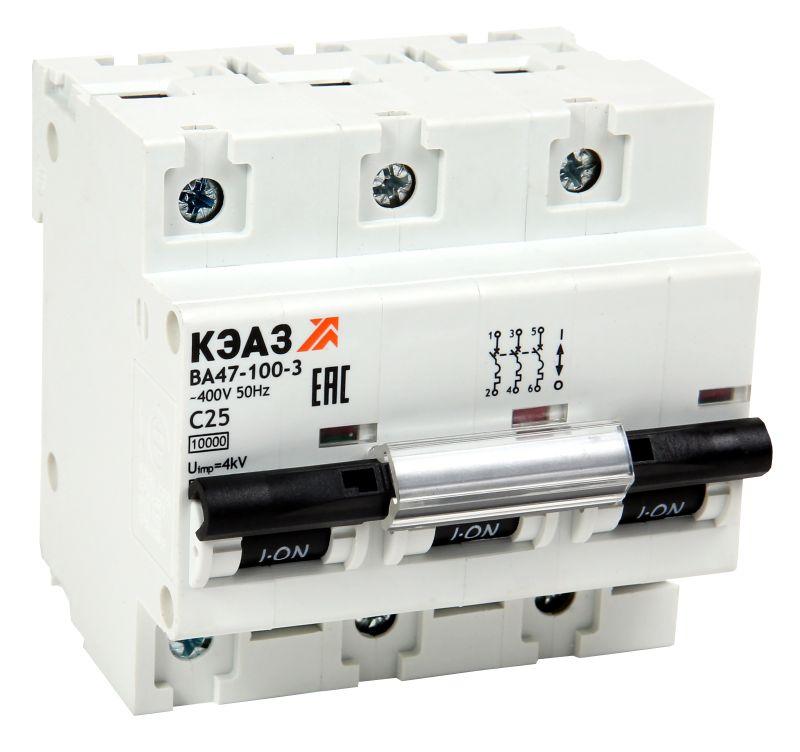 Выключатель автоматический модульный 3п D 100А 10кА ВА47-100-3D100-УХЛ3 КЭАЗ 141632