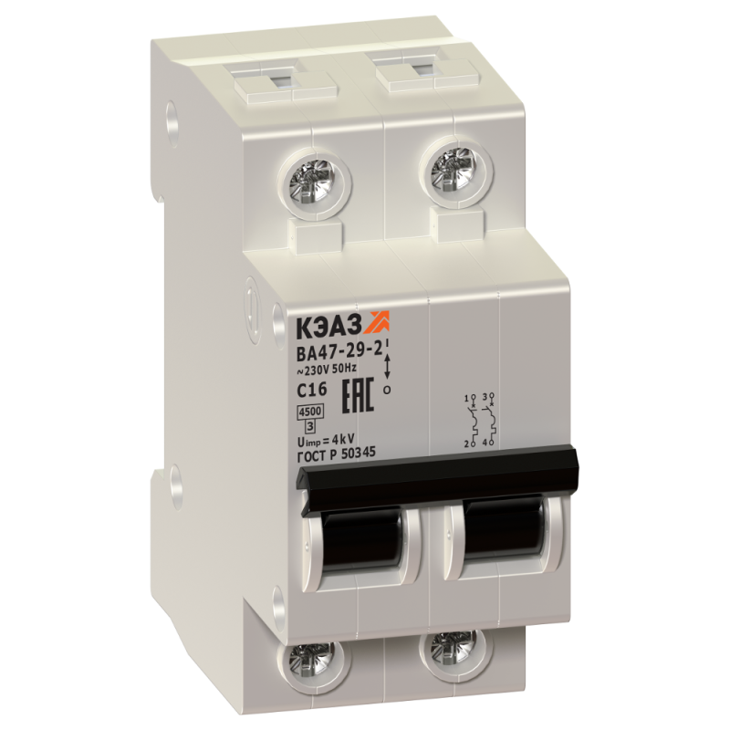 Выключатель автоматический модульный 2п C 6А 4.5кА ВА47-29-2C6-УХЛ3 КЭАЗ 231628