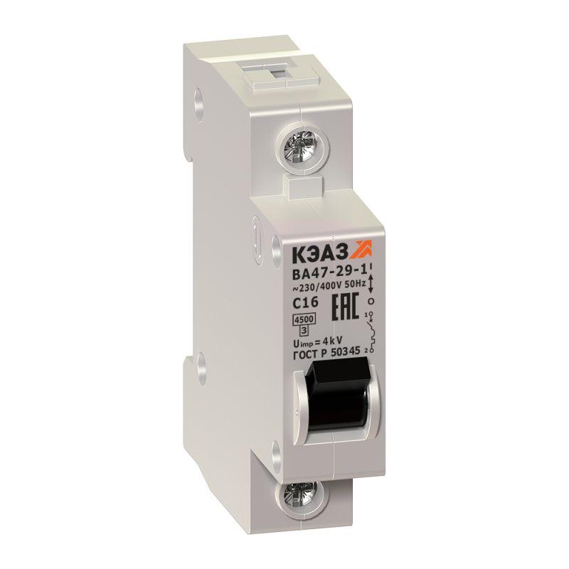 Выключатель автоматический модульный 1п C 63А 4.5кА ВА47-29-1C63-УХЛ3 КЭАЗ 141590