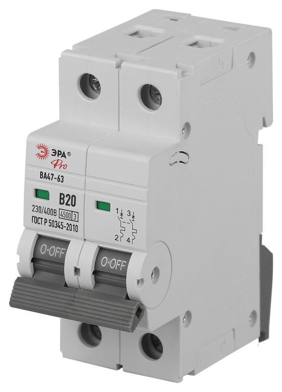 Б0059380 | Выключатель автоматический 2п B 20А 4.5кА ВА47-63 PRO ЭРА