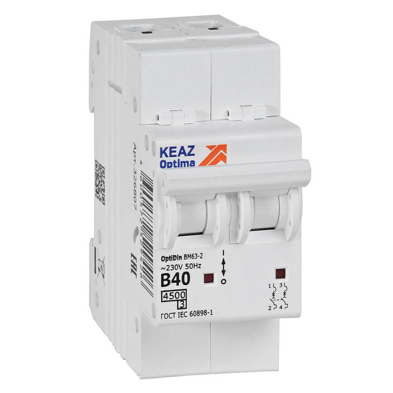 Выключатель автоматический модульный 2п B 40А 4.5кА OptiDin BM63-2B40-4.5-УХЛ3 КЭАЗ 329514