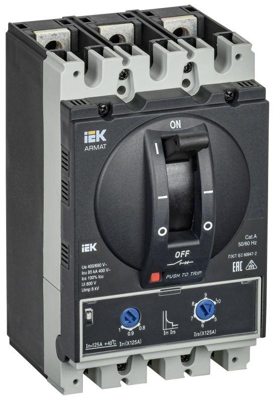 Выключатель автоматический в литом корпусе 3п D 85кА 125А расцепитель термомагнитный регулируемый ARMAT IEK AR-MCCB-3D-085-0125A-ATUC