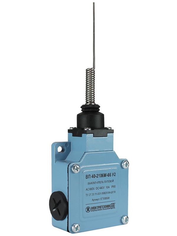 Выключатель путевой ВП 40-2106М-66 У2 1НО+1НЗ IP66 рычаг пружинный "кошачий ус" мгновенный без сальника Электротехник ET008688