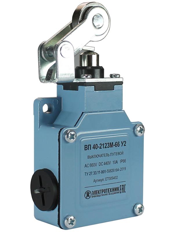 Выключатель путевой ВП 40-2123М-66 У2 1НО+1НЗ IP66 рычаг со стальным роликом горизонт. срабатывания мгновенный без сальника Электротехник ET009402