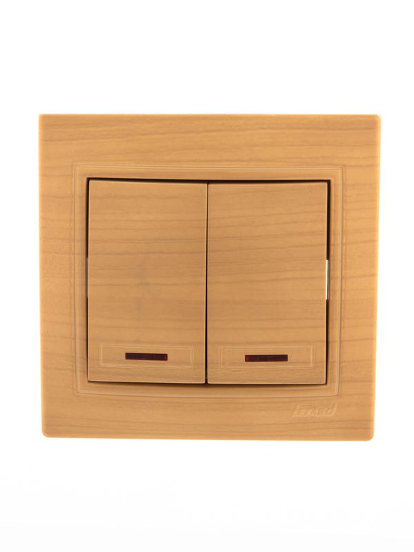 Выключатель 2-кл. СП Mira 10А с подсветкой сосна LEZARD 701-0801-112