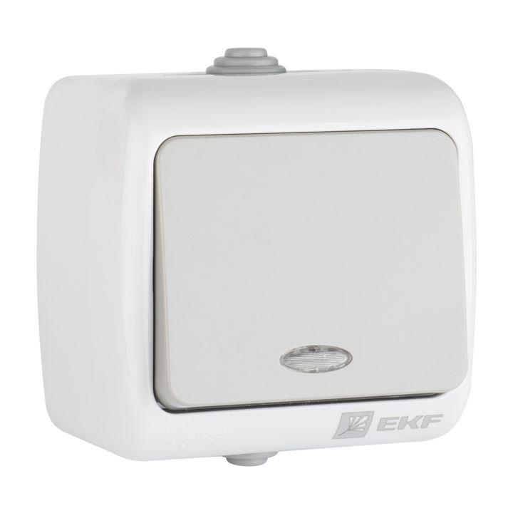 Выключатель 1-кл. ОП Мурманск 10А IP54 с индикатором сер. EKF EFV10-121-30-54