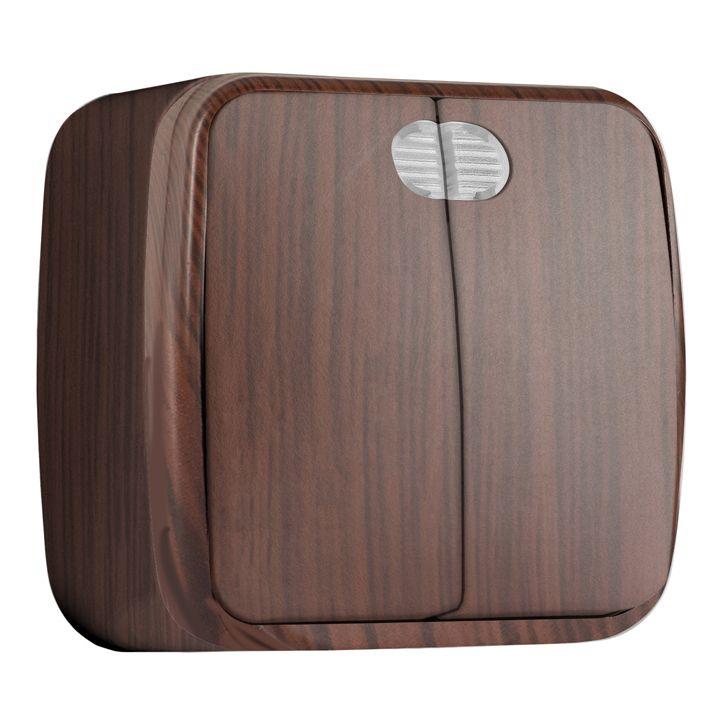 Выключатель 2-кл. 2п ОП Минск 10А IP20 с индикатором темн. дерево EKF EGV10-123-40