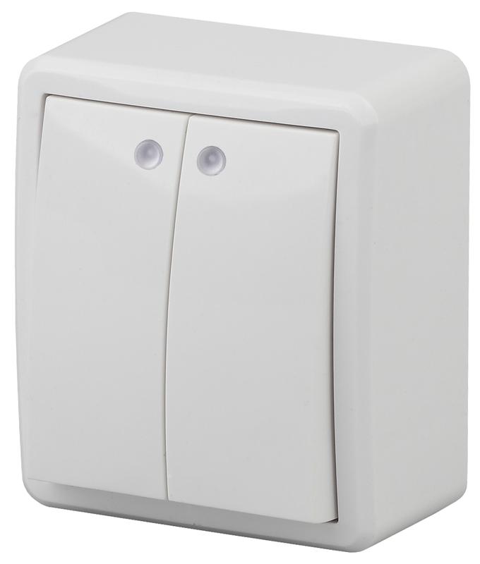 25023 | Выключатель 2-кл. СП Mimoza 10А IP20 с подсветкой крем./крем. Makel