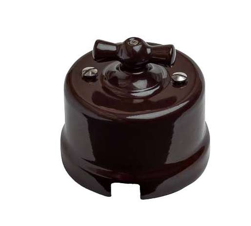 Выключатель проходной поворотный 1-кл. ОП Лизетта 10А IP20 ретро 2 полож. керамика корич. Bironi B1-201-02