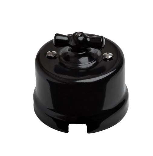 Выключатель проходной поворотный 1-кл. ОП Лизетта 10А IP20 ретро 2 полож. керамика черн. Bironi B1-201-03