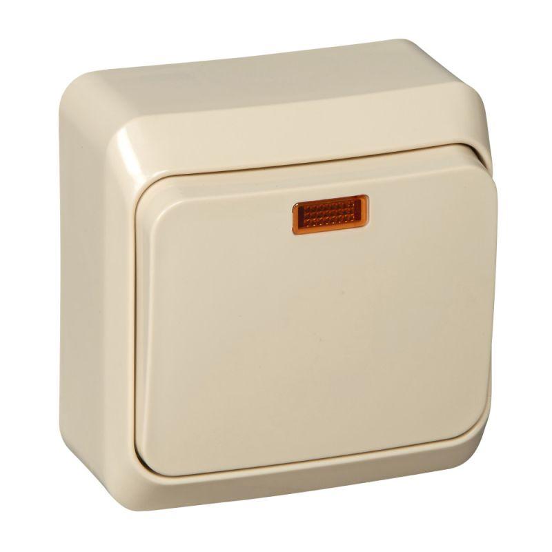 BA10-007K | Переключатель проходной 1-кл. ОП Этюд 10А IP20 с подсветкой крем. SE
