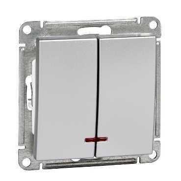 Выключатель 1-кл. 2п 2мод. СП Unica New IP21 (сх. 2а) 250В 16AX с индикацией механизм алюм. SchE NU526230S