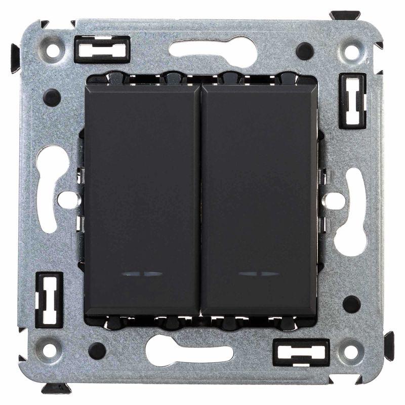 GAL001053 | Выключатель 2-кл. ArtGallery (сх. 5а) 10AX с подсветкой механизм карбон SE