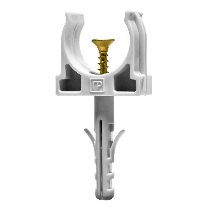 Держатель для труб (клипса) d20мм с дюбелем и саморезом сер. (в малой упак.) (уп.10шт) Промрукав PR13.0308