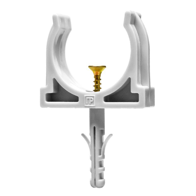 Держатель для труб (клипса) d32мм с дюбелем и саморезом сер. (уп.25шт) Промрукав PR13.0218