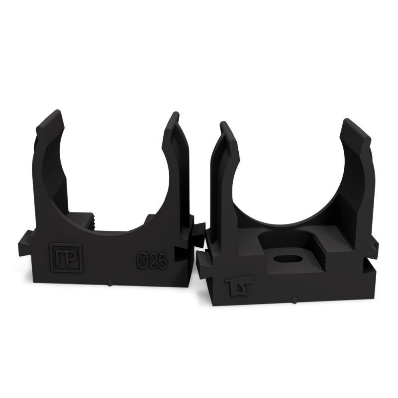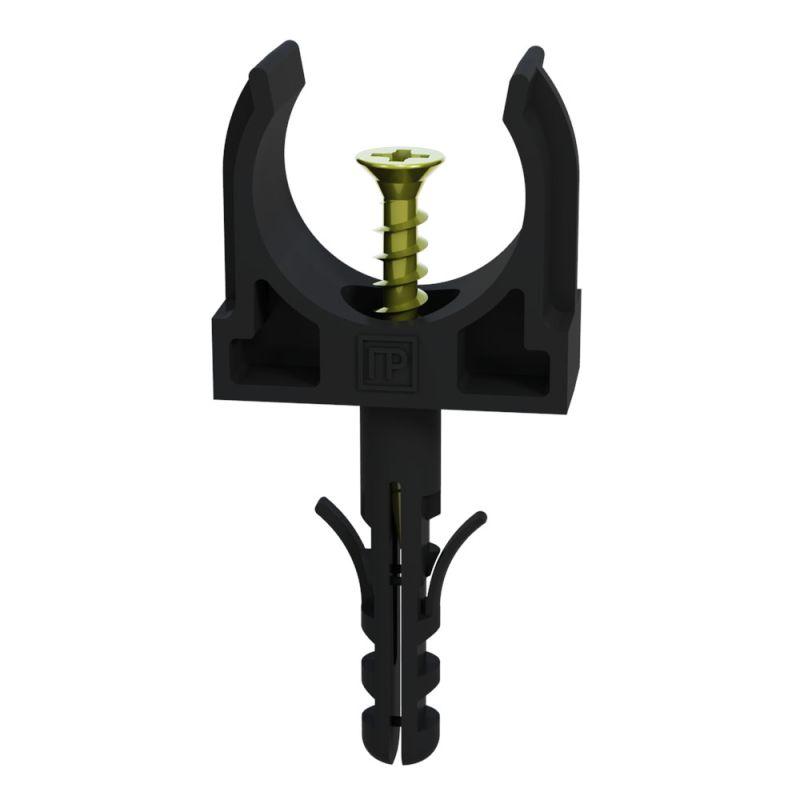 Держатель для труб (клипса) d25мм с дюбелем и саморезом черн. (уп.100шт) Промрукав PR13.0221