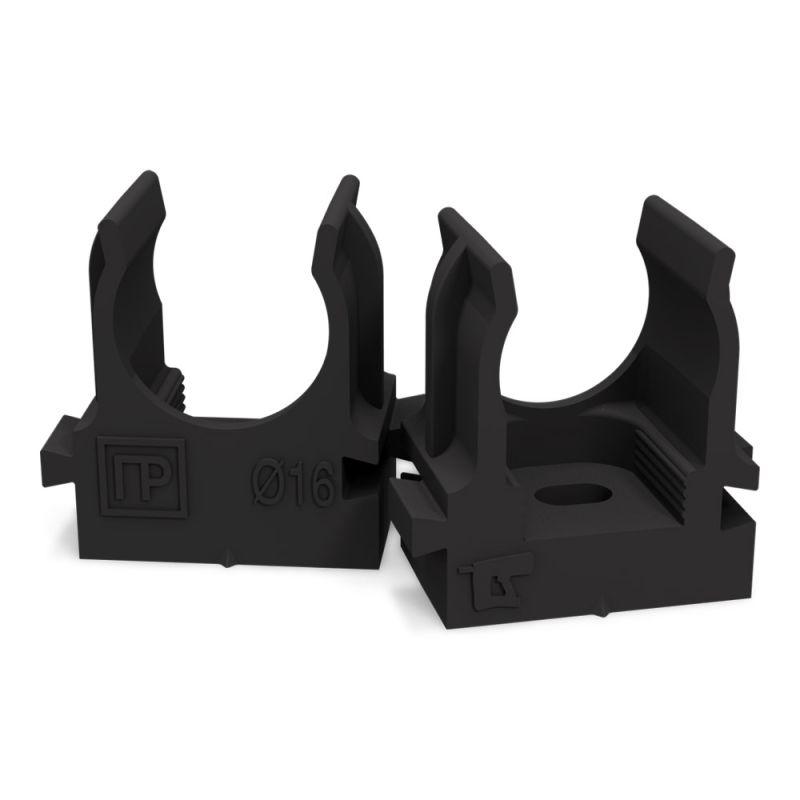 Держатель для труб (клипса) d16мм для монтажного пистолета атмосферостойкая черн. Промрукав PR13.0405